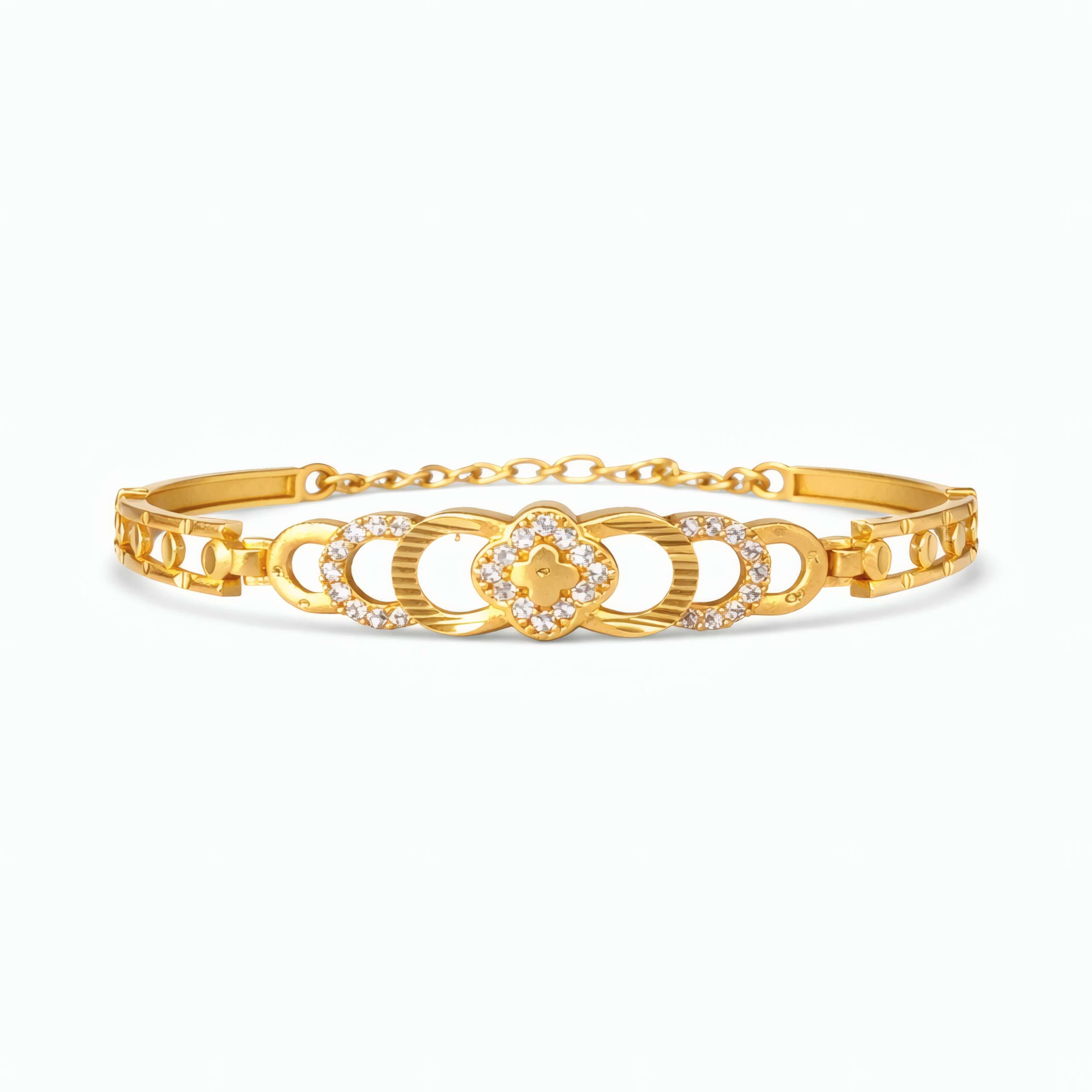 Elegant Crystal Floral Link Gold Plated Bracelet for Women