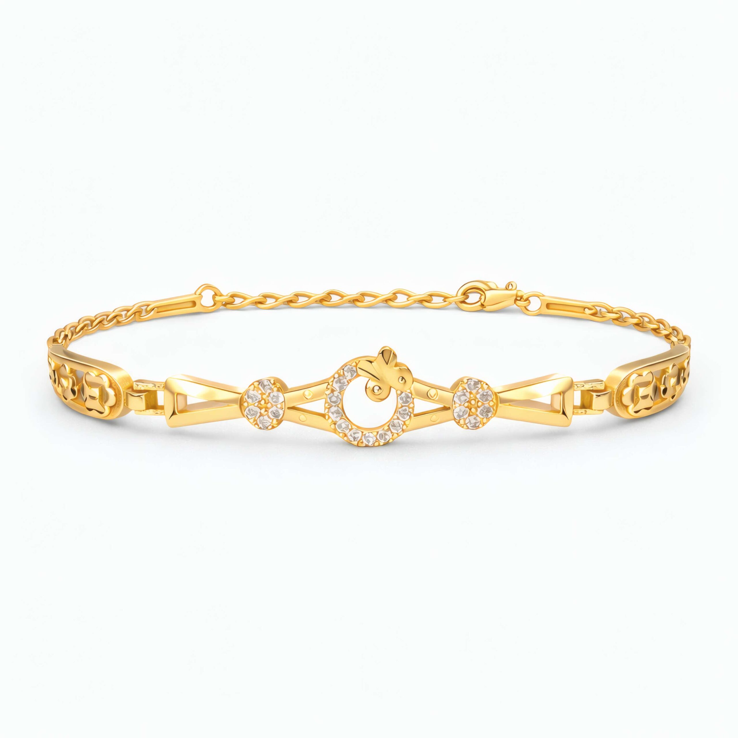 Inspired by modern minimal elegance, this beautifully crafted bracelet blends charm, sparkle, and refined design. At the center sits a graceful crystal-studded circle adorned with a delicate gold charm detail, creating a unique focal point that captures attention with subtle brilliance.