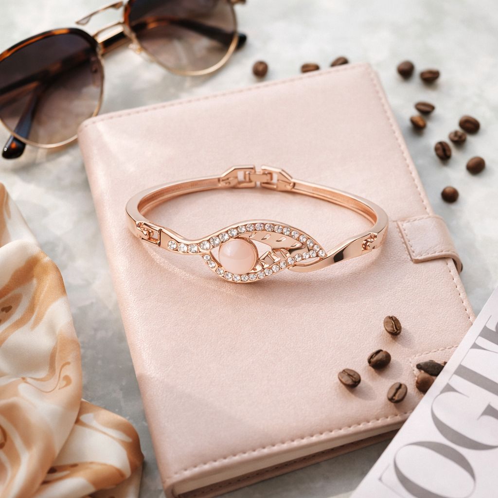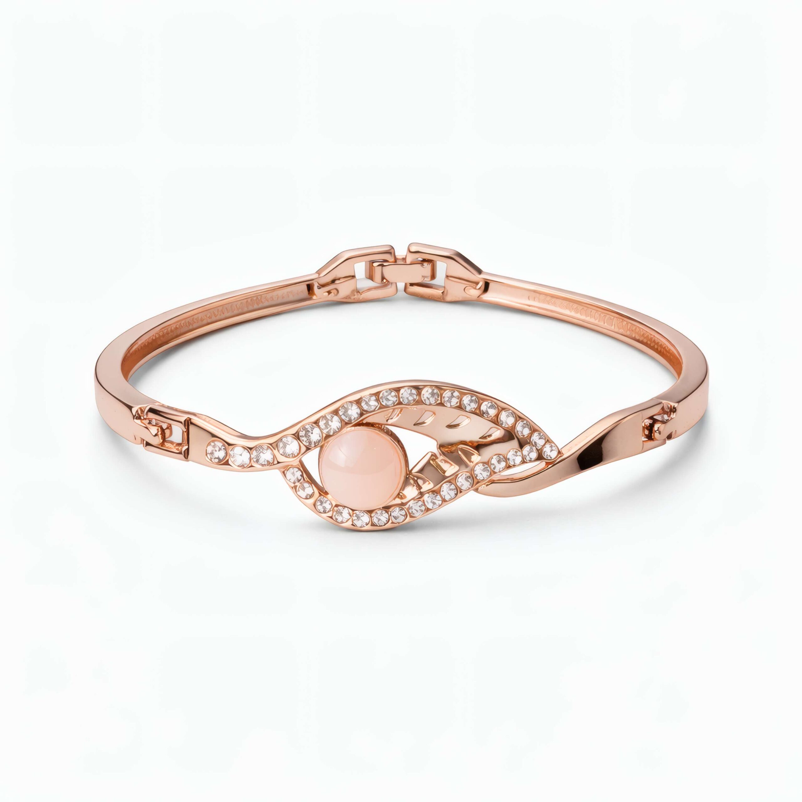 Elegant Eye Shape Pink Stone Rose Gold Bracelet for Women