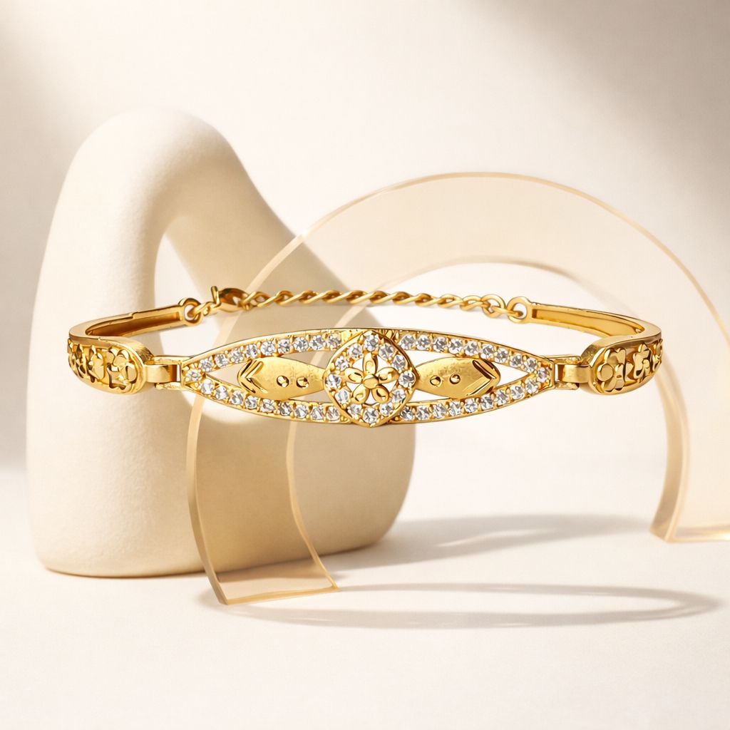 Elegant Floral Crystal Gold Plated Bracelet for Women