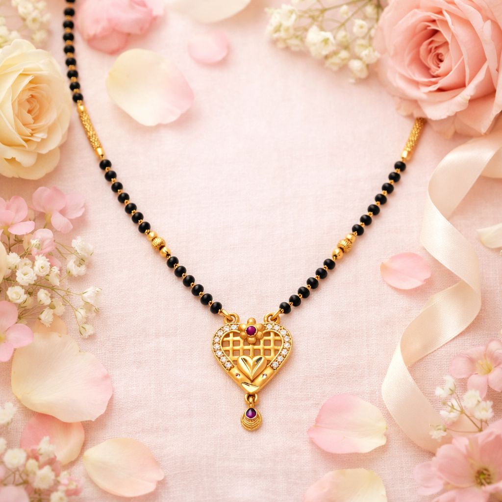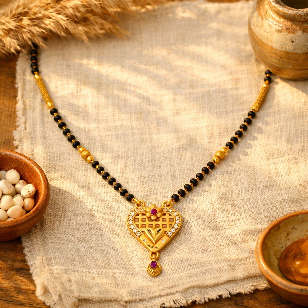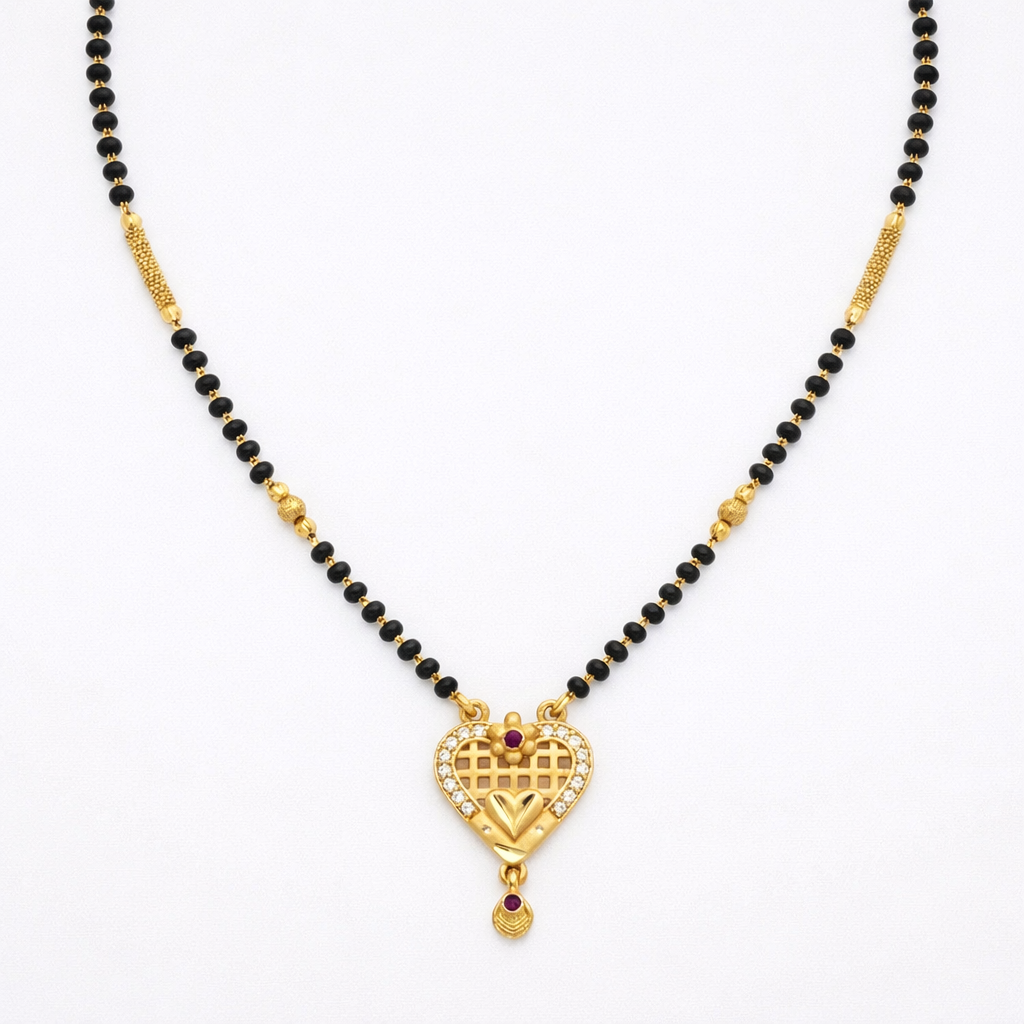 Elegant Heart Lattice Mangalsutra Necklace with Ruby Accent