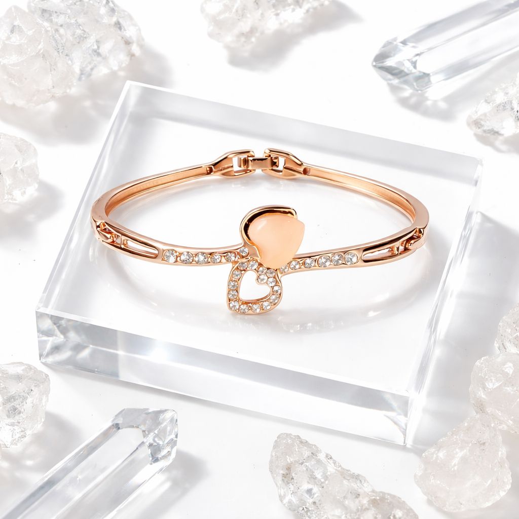 Elegant Rose Gold Double Heart Crystal Bracelet for Women