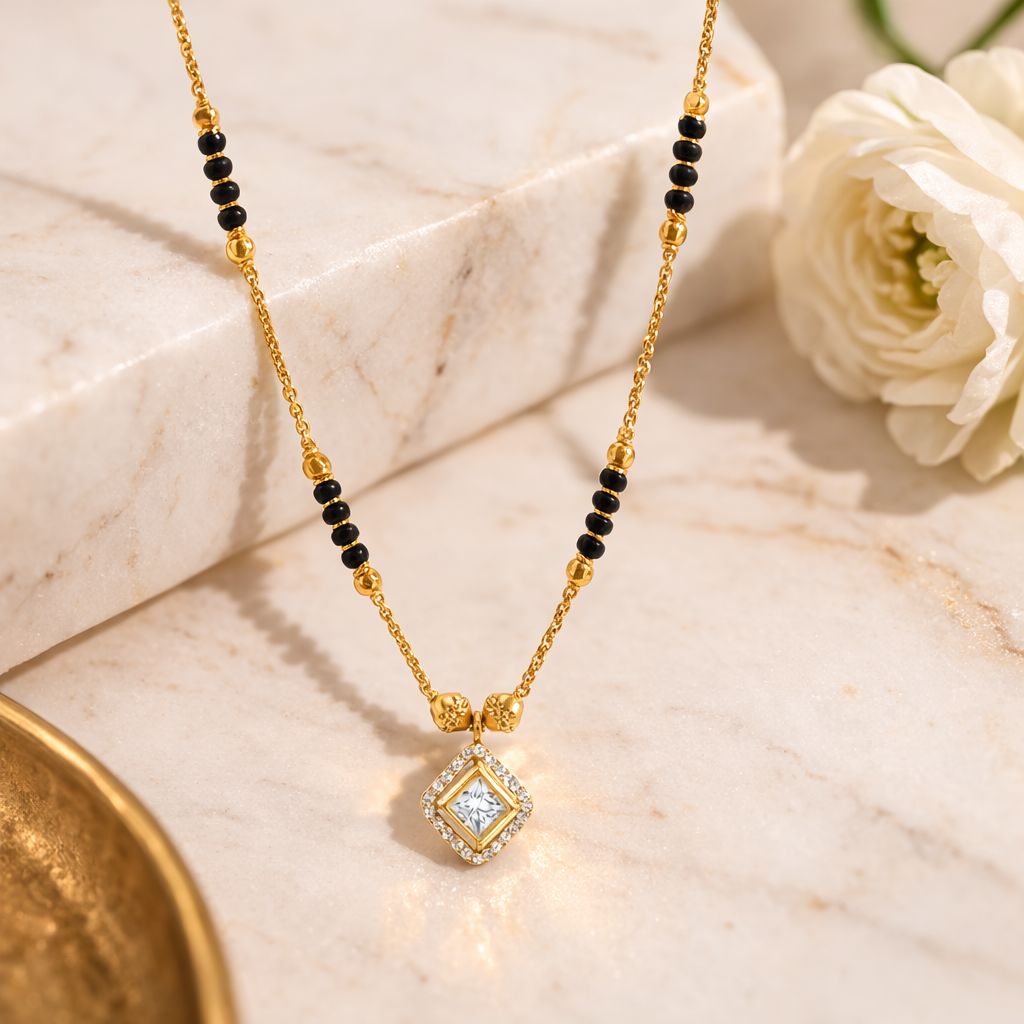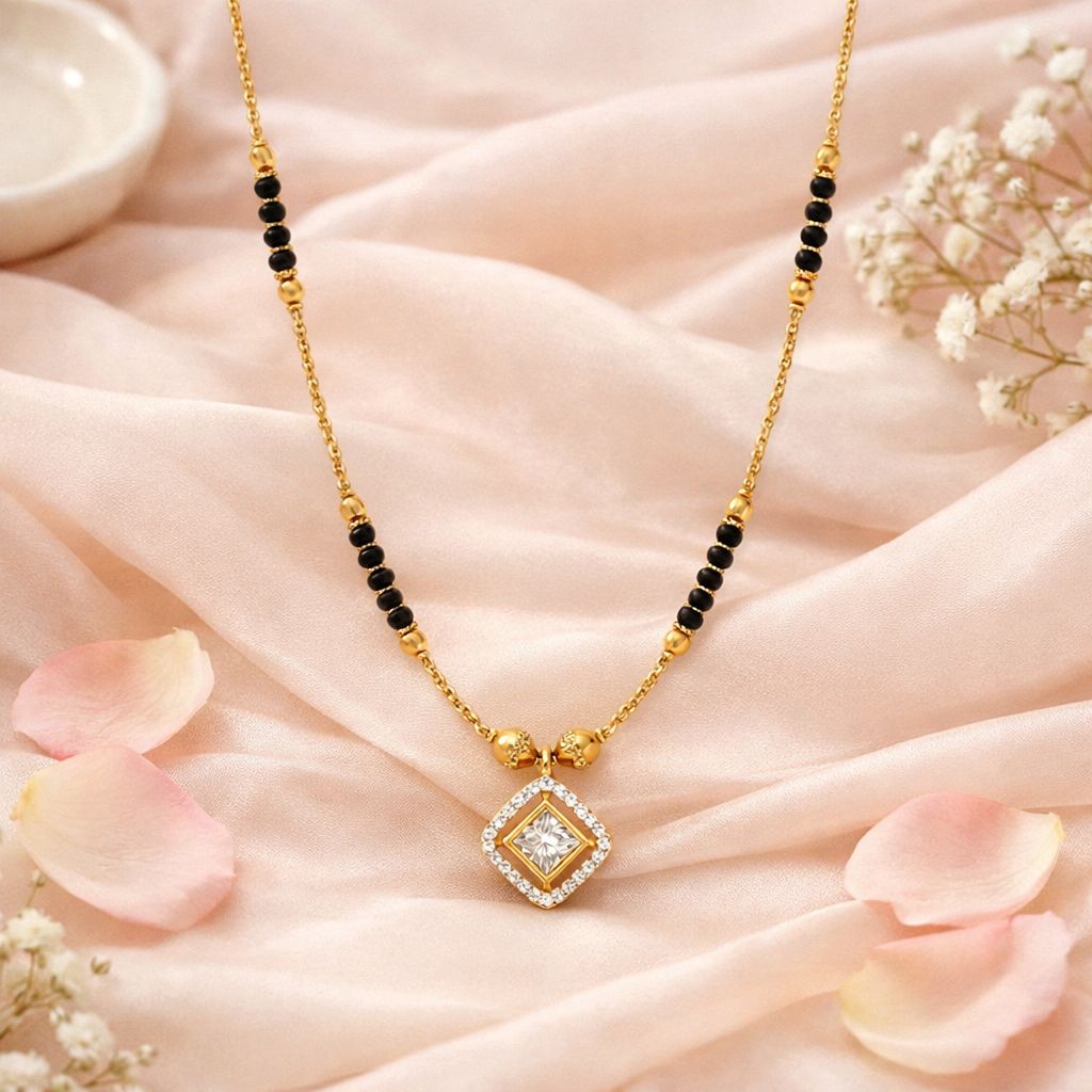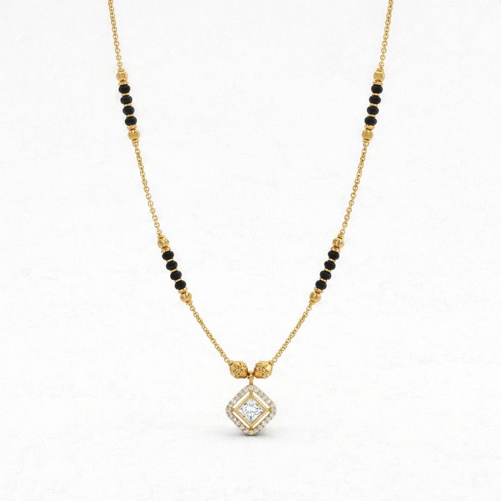 Elegant Square Diamond Style Gold Mangalsutra Pendant Necklace