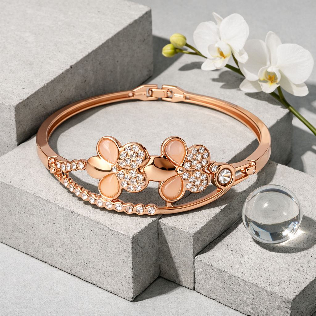 Elegant Floral Crystal Rose Gold Plated Bracelet for Women