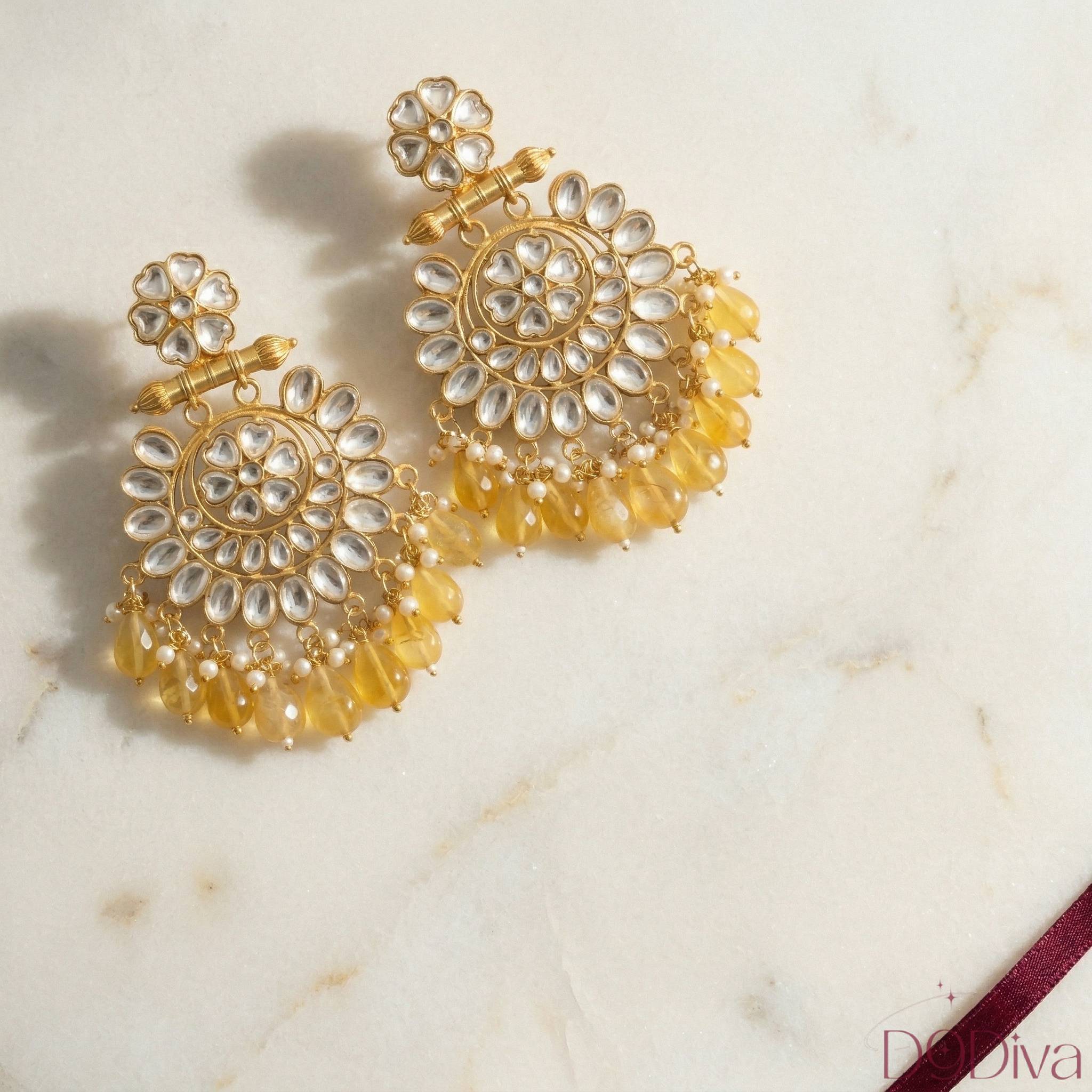 Shop kundan chandbali earrings with elegant bead drops. Perfect for weddings, festive wear & gifting. Add timeless charm to your look today.