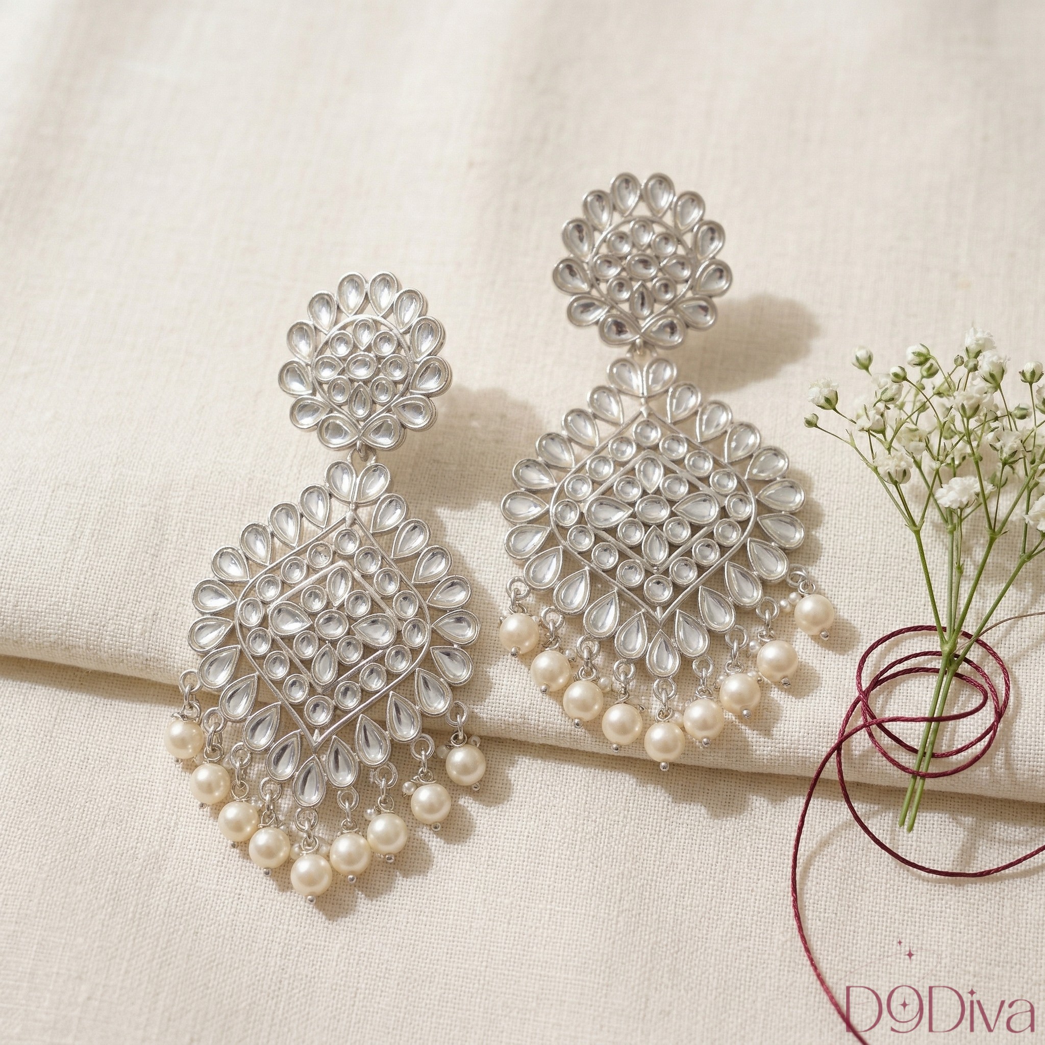 Elegant Kundan Pearl Chandbali Earrings – Premium Designer Statement