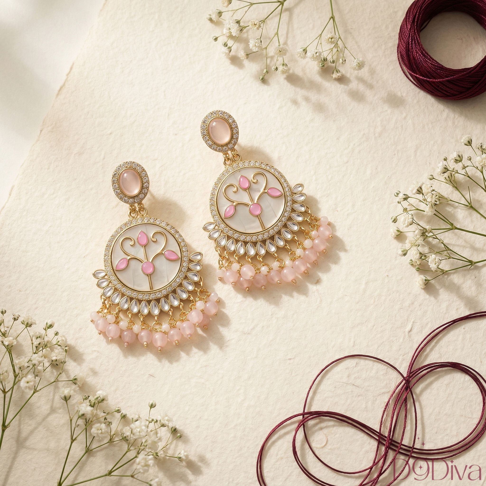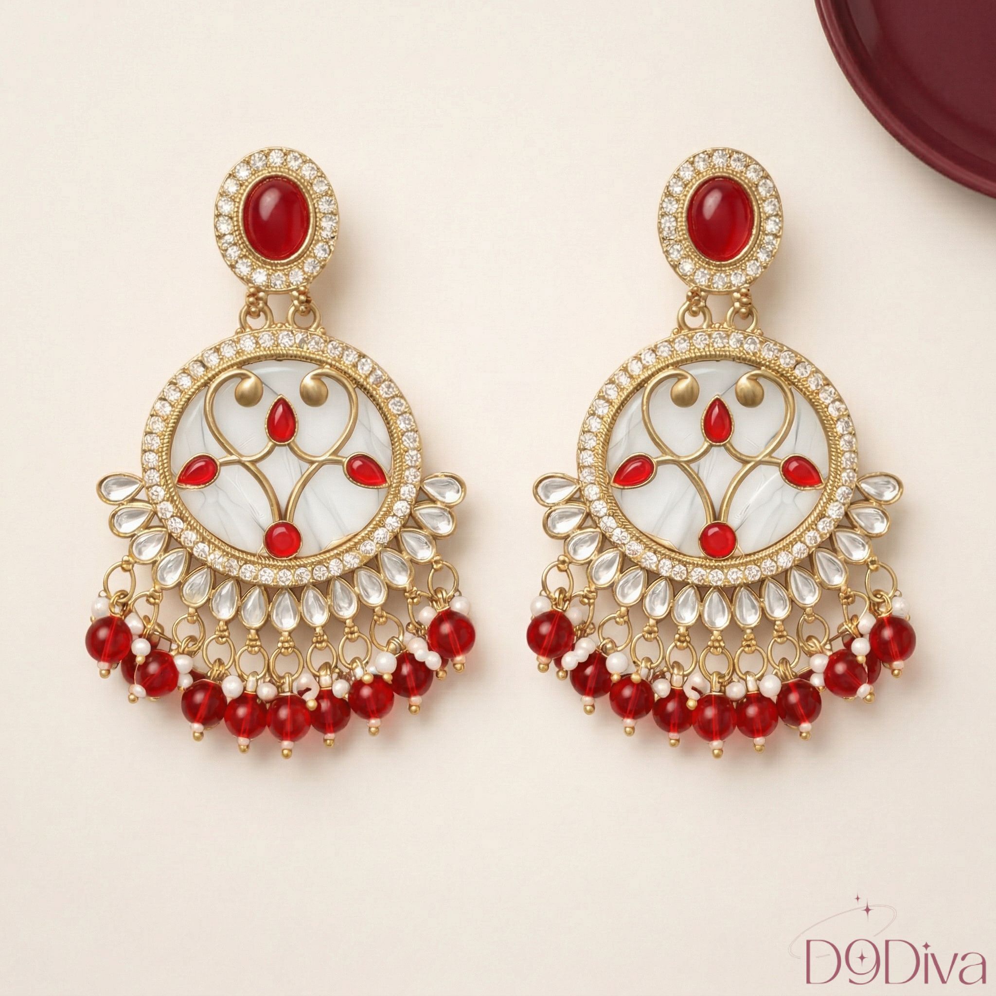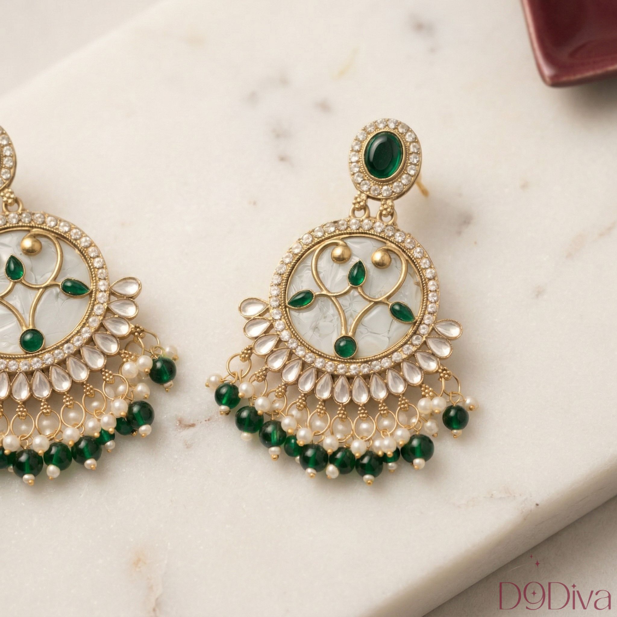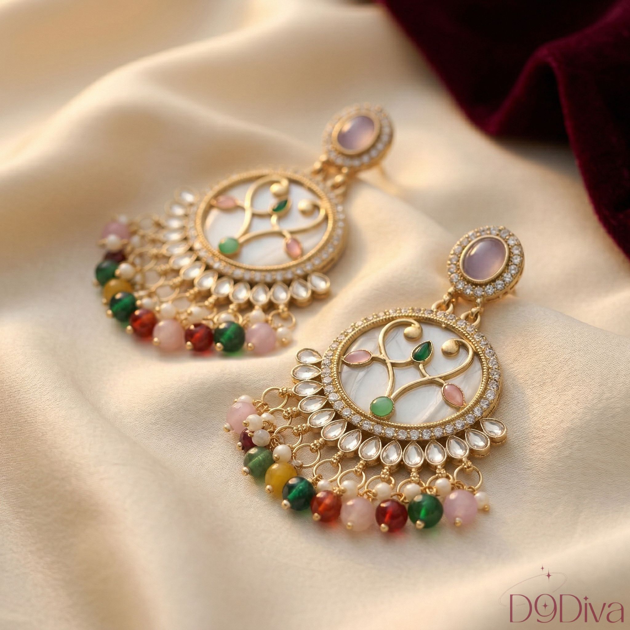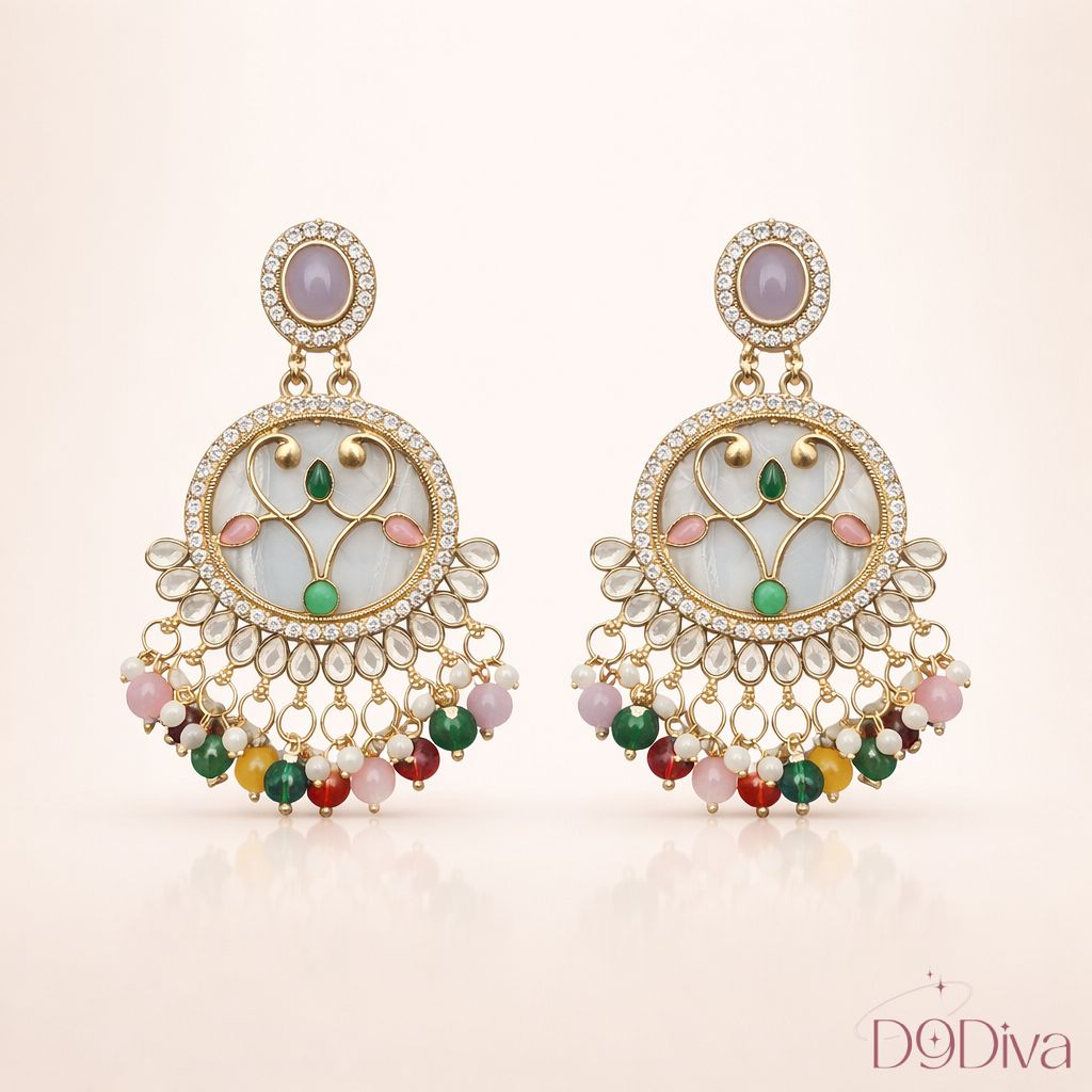 Inspired by regal Indian craftsmanship, the circular motif paired with fine embellishments creates a luxurious yet wearable design. The cascading beads add movement and charm, making every turn feel effortlessly elegant. Whether you’re dressing up for a festive celebration, wedding function, or a glamorous evening out, these earrings elevate your look with timeless sophistication.