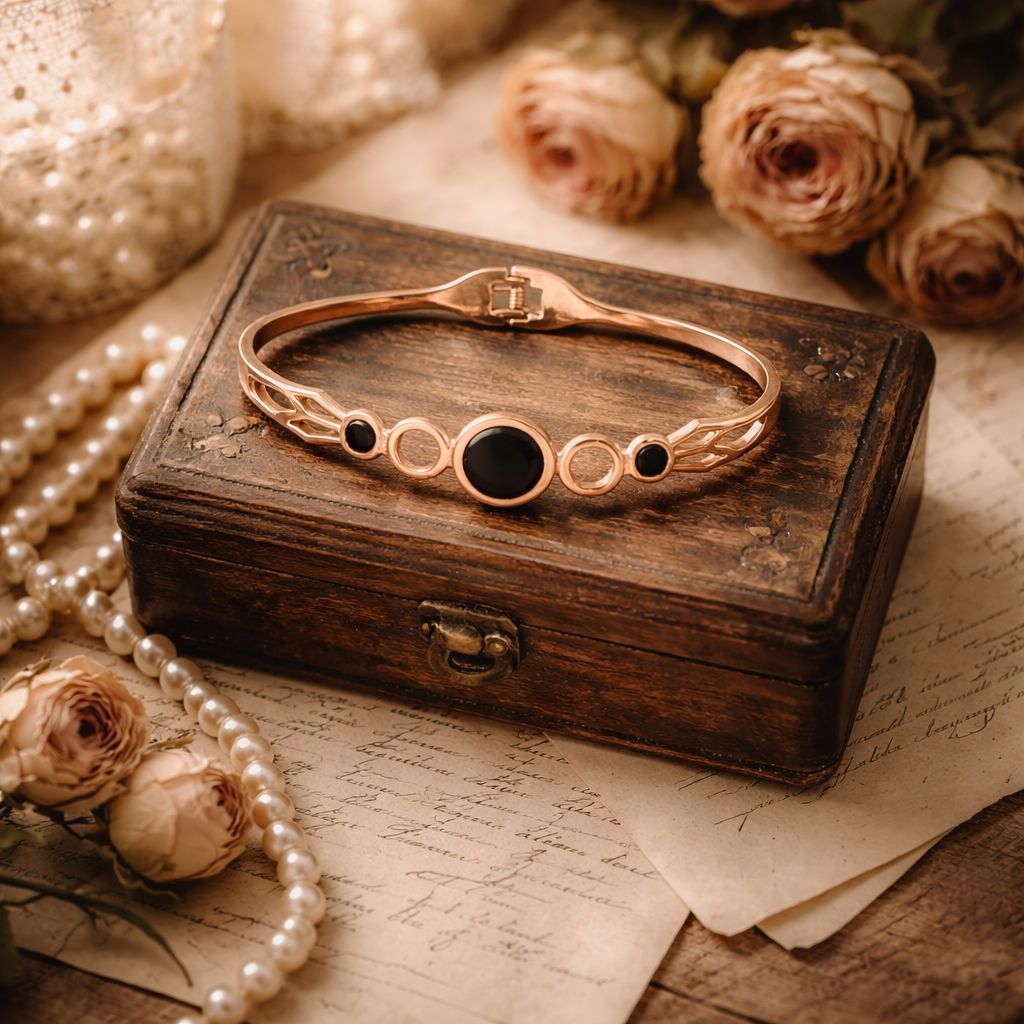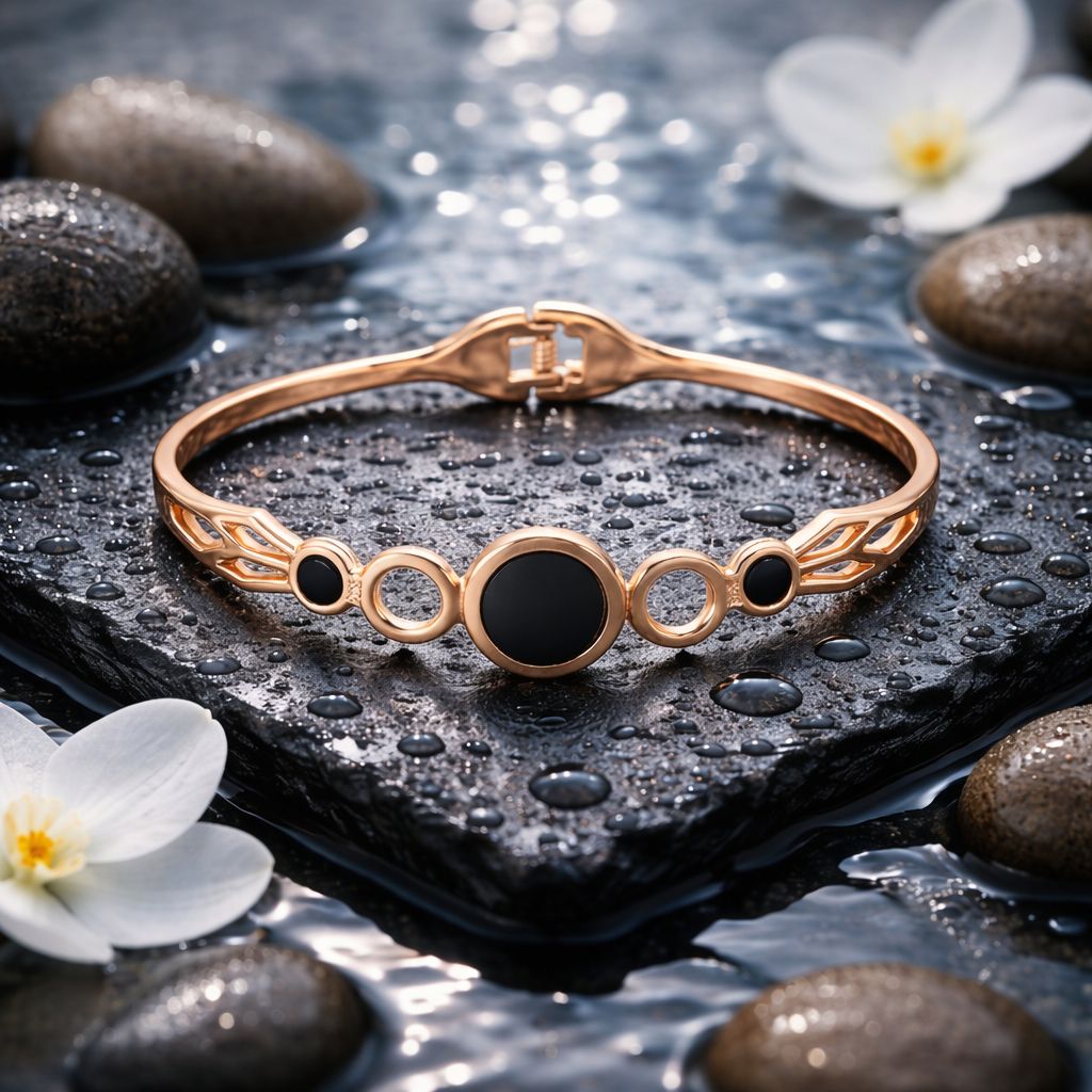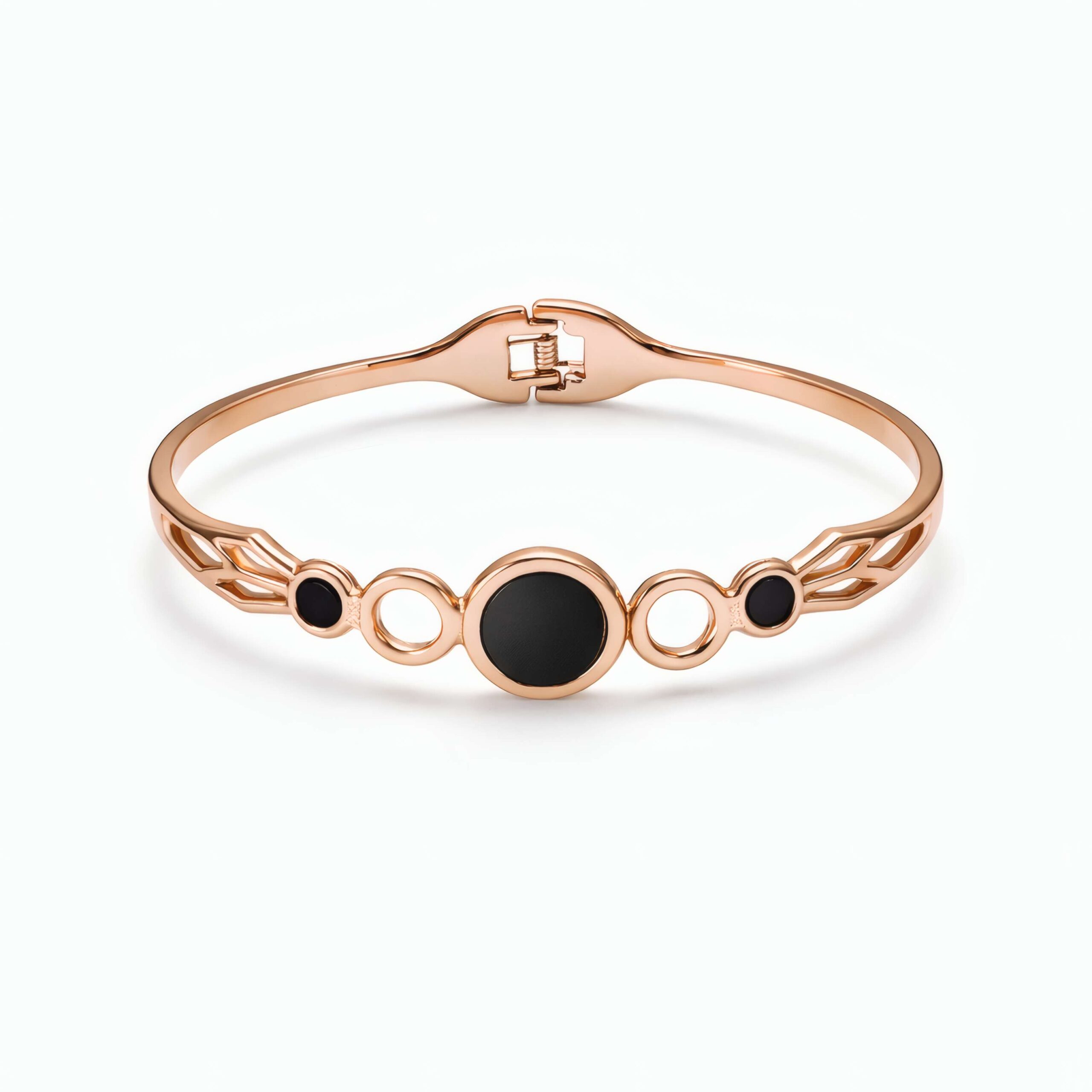 Modern Black Stone Rose Gold Bracelet for Women