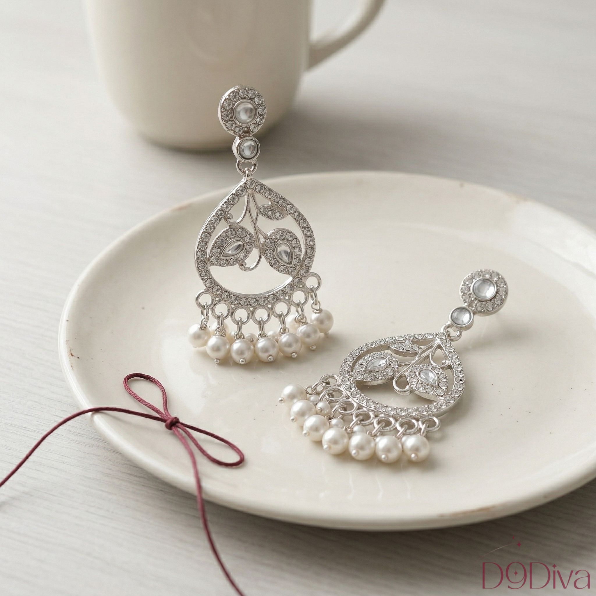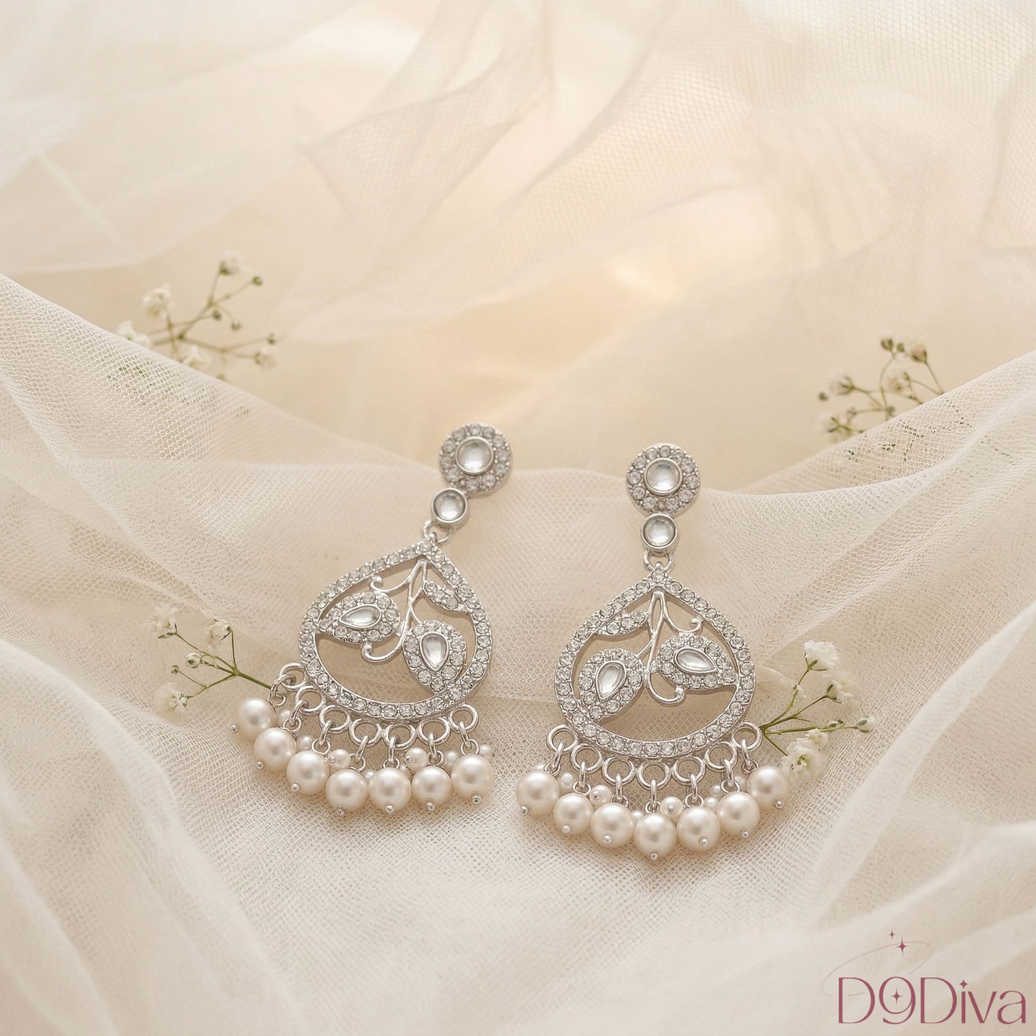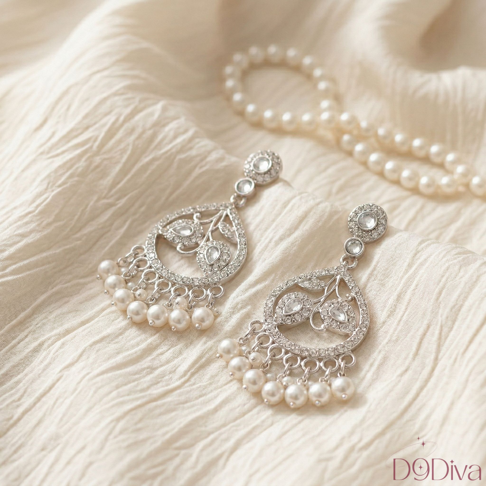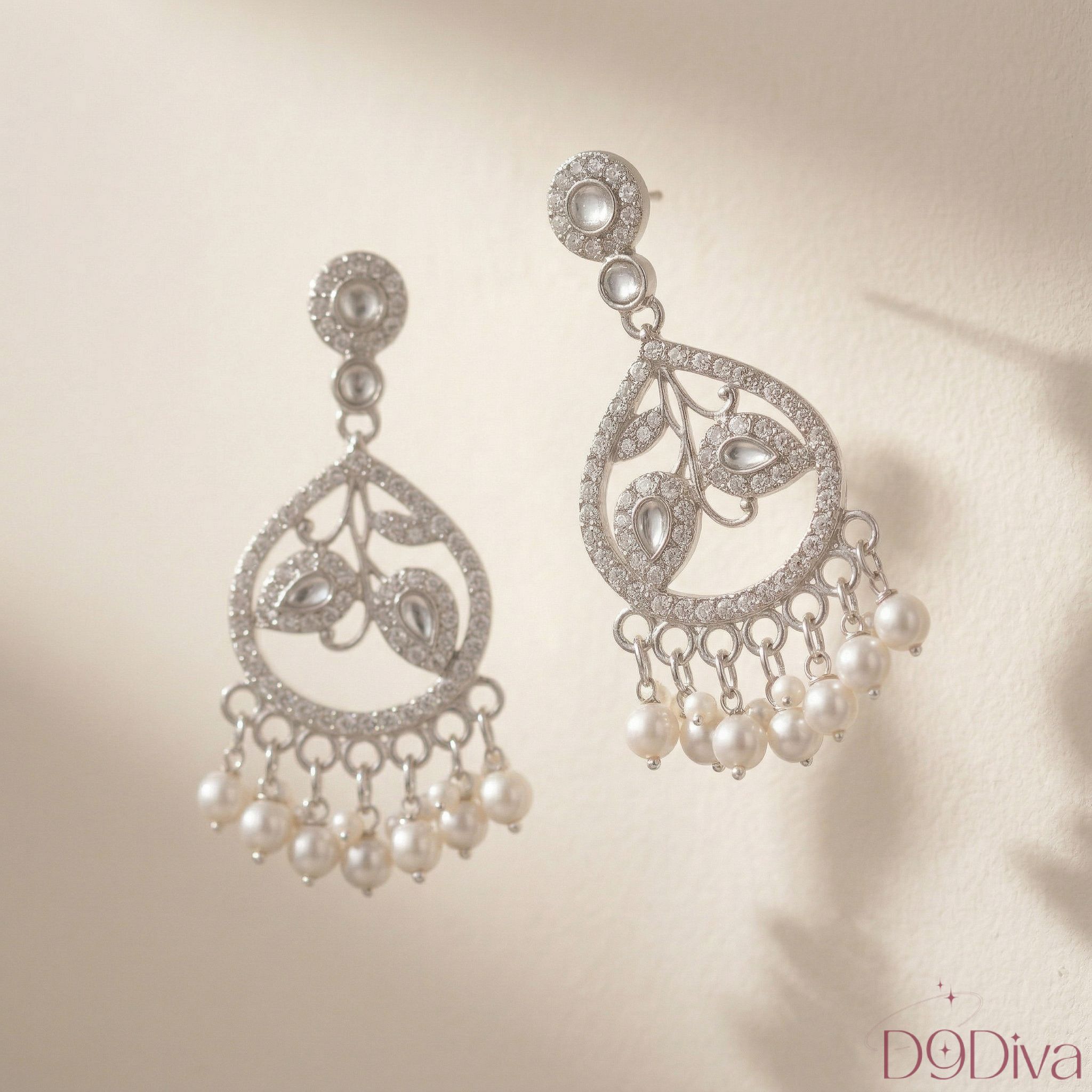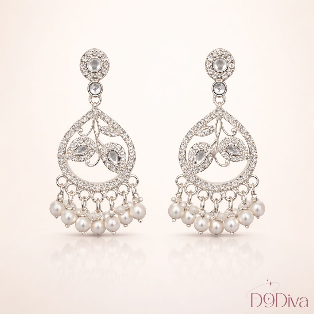 The cascading pearls at the base add gentle movement and a luxurious charm, making every turn feel effortlessly graceful. Whether you’re dressing up for a festive celebration, a wedding function, or a romantic evening, these earrings elevate your look with refined sophistication.