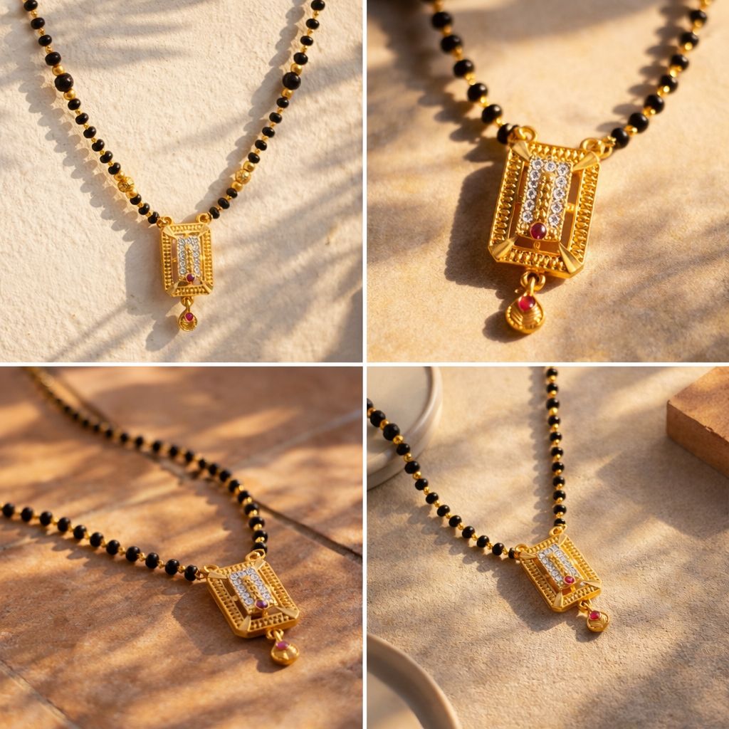 Designed to celebrate both tradition and contemporary elegance, this royal rectangle mangalsutra necklace is a beautiful expression of refined style. Its structured design and delicate detailing make it a perfect choice for women who love jewellery that feels both classic and modern.
