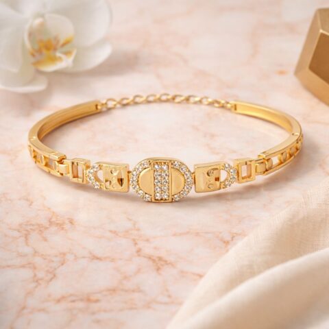 Elegant Oval Crystal Gold Plated Bracelet for Women